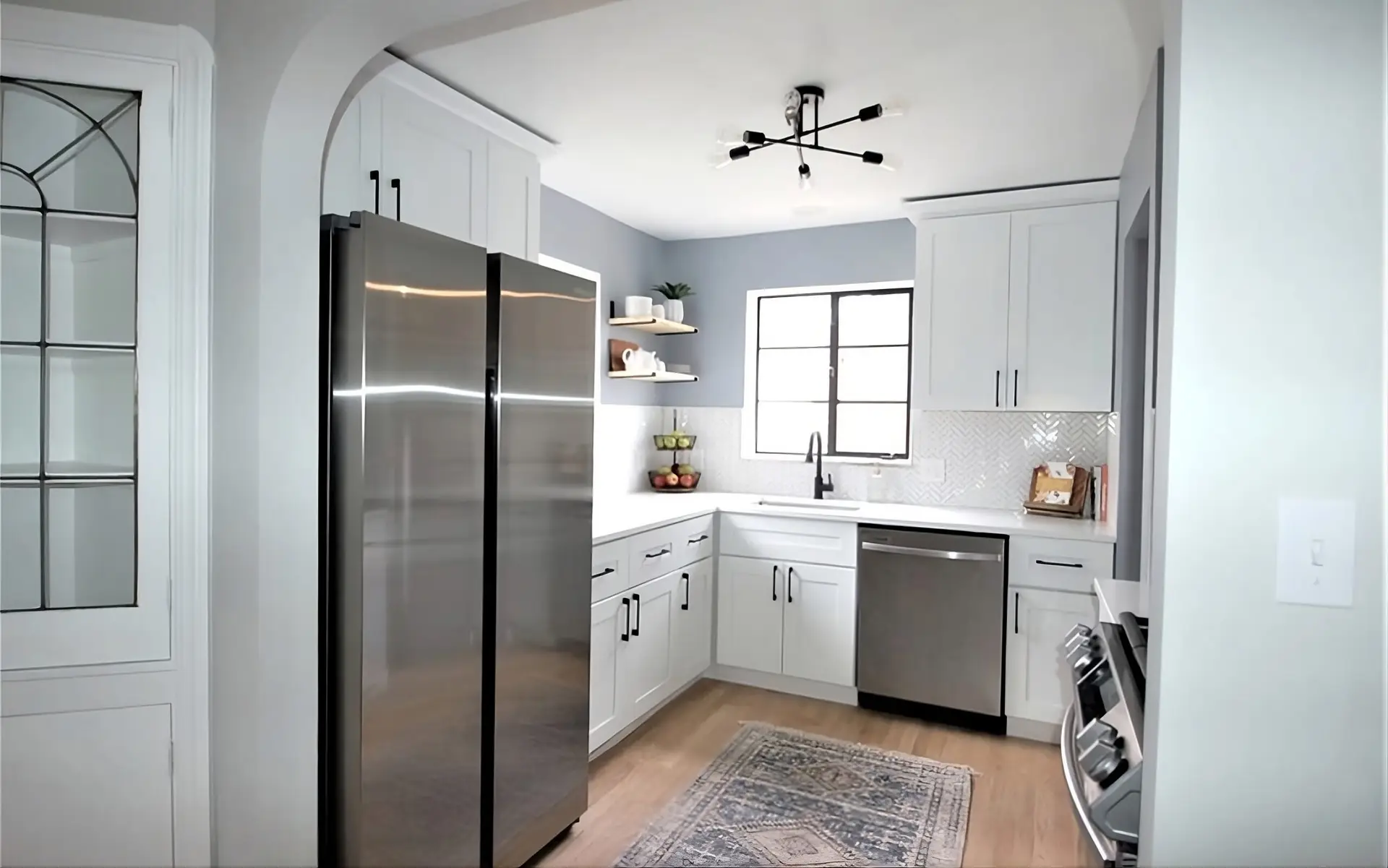 Full or partial updates including cabinets, flooring, tile, backsplashes, lighting, and layout improvements.